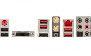 Zezadu má počítač konektory 2x USB 3.1, 2x USB 3.0, 2x USB 2.0, 1x Gbit síť, optický výstup a Jack výstupy zvuku pro až 7.1 reproduktory, 1x PS/2, obrazové výstupy pro případ neosazení samostatné grafické karty (DVI, HDMI), Wifi, Bluetooth.